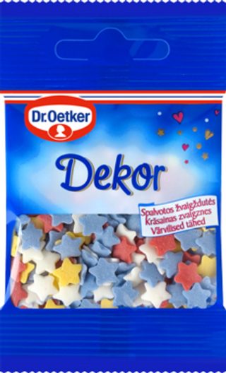Cukriniai pabarstukai, spalvotos žvaigždutės (10 g)