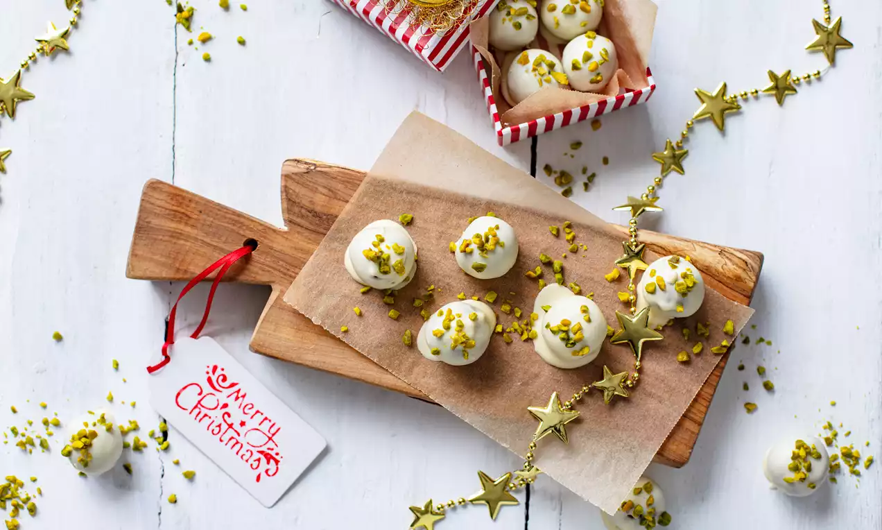 Smulkiai supjaustykite šokoladą ir ištirpinkite dubenyje virš vandens vonelės. Panardinkite datulių rutuliukus į ištirpintą šokoladą naudodami šakutę ir nuvalykite šokolado perteklių į dubens kraštus. Sudėkite rutuliukus ant kepimo popieriaus, apibarstykite smulkintomis pistacijomis ir maždaug 30 minučių palaikykite šaldytuve.